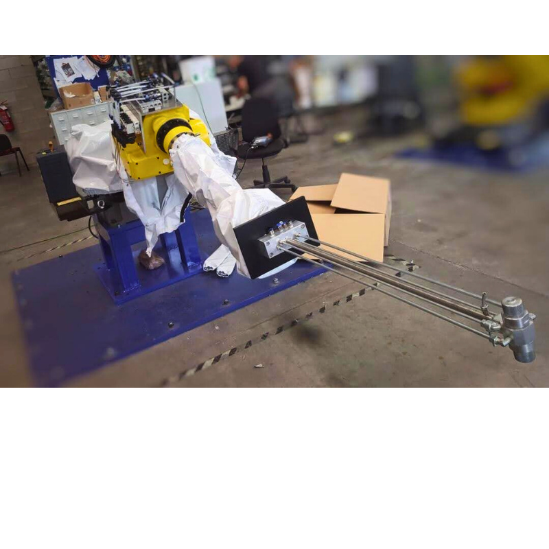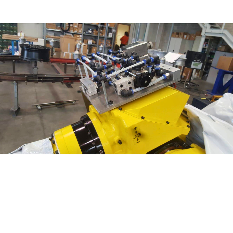 In alternativa, è possibile integrare la testa di spruzzatura direttamente sulla pinza di presa del pezzo, combinando in un’unica soluzione le operazioni di manipolazione e lubrifica. Questo approccio consente di ridurre i tempi ciclo, ottimizzare gli spazi e aumentare la produttività dell’impianto.